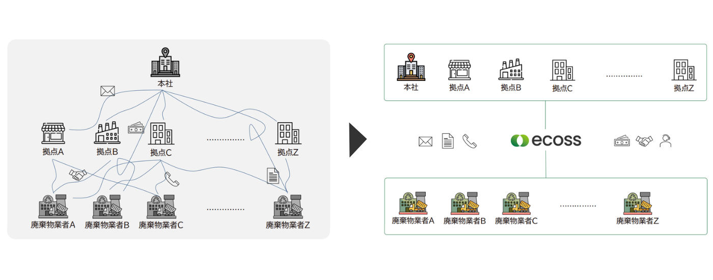エコロジネットプラスを前提とした導入支援により、拠点ごとの個別対応や業者調整を本社が抱え込む必要がなくなります。導入プロセスと運用ルールが統一されることで、拠点間の対応差や属人化を防ぎながら、全社の進捗とデータを一元的に把握できる状態が実現します。